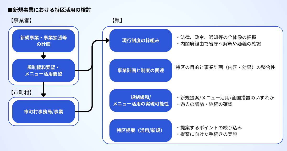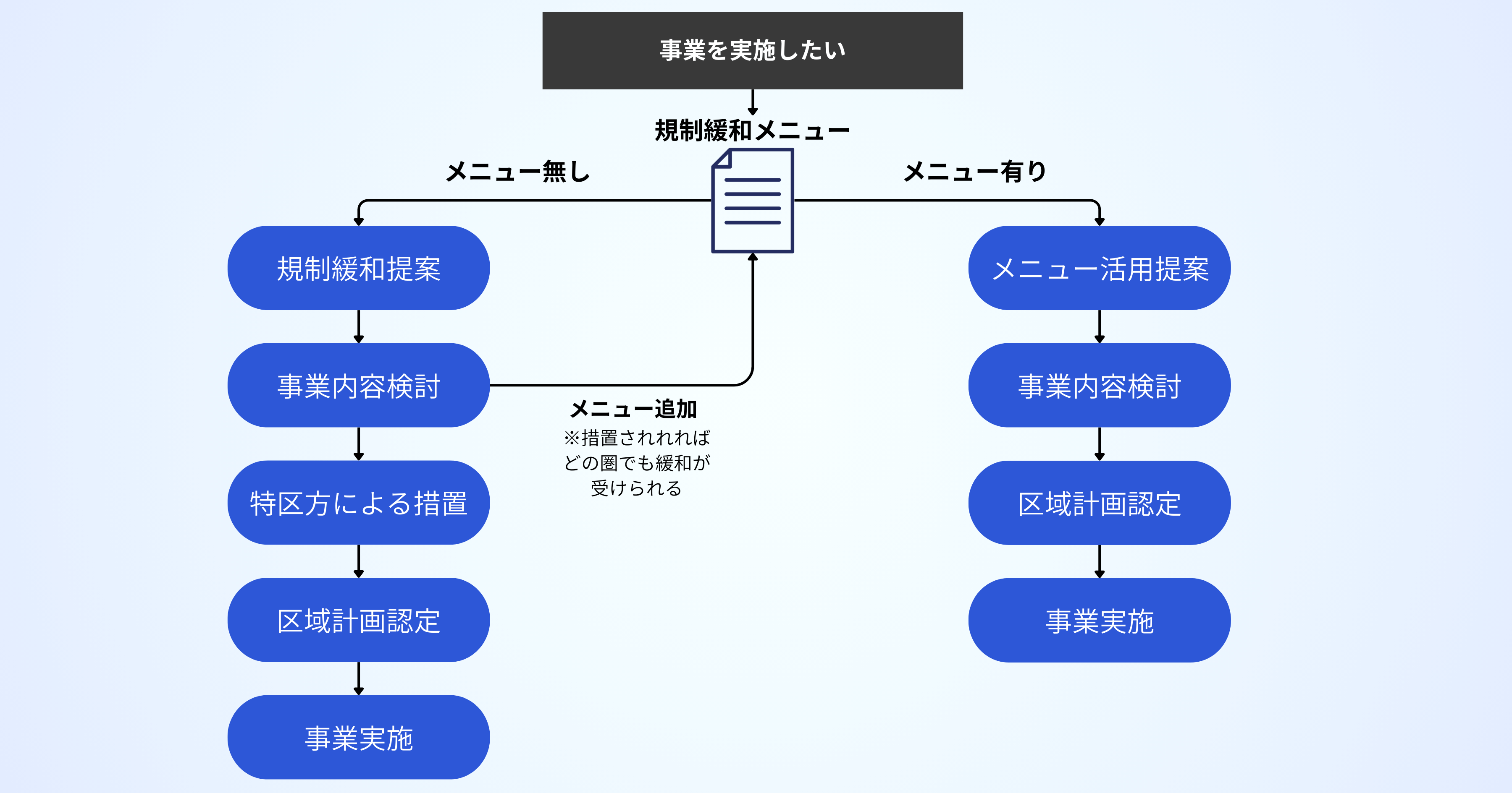 また、既存の規制緩和措置がない場合は、国に対し新たな規制緩和を提案することができます。