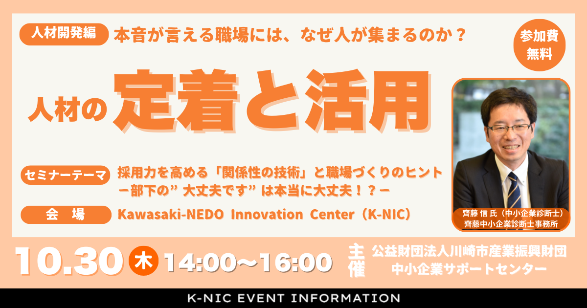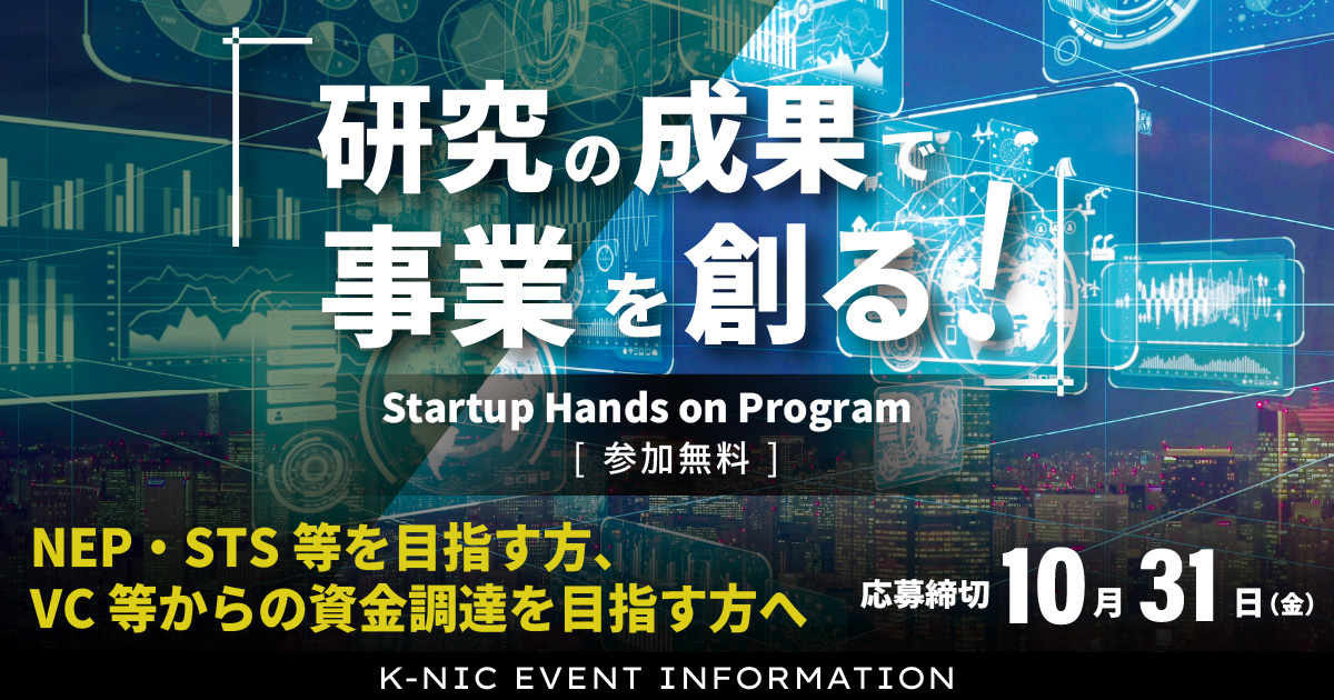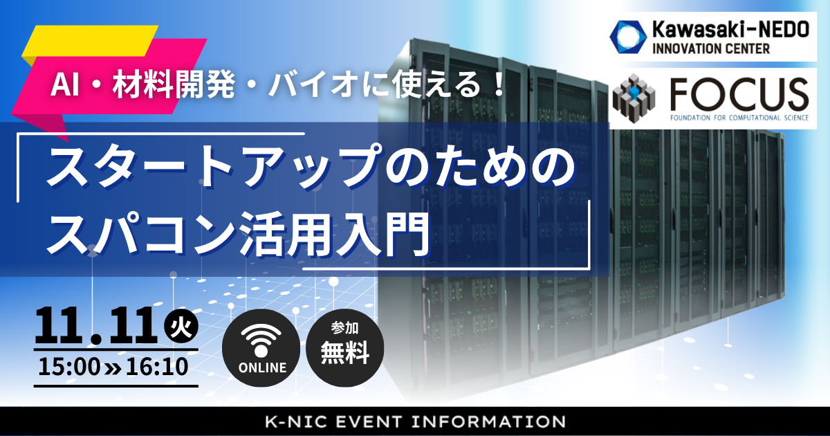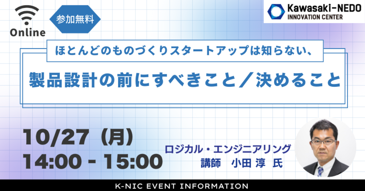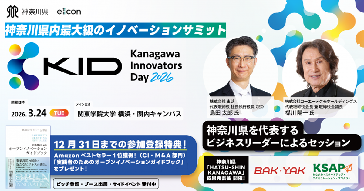 新着情報 カレンダー イベント・セミナー等の情報をご紹介します。 イベント, 交流会 【12月17日】神奈川県×富士市共催 官民連携で実現するカーボンニュートラル【BAK YAK Connecting Day#31】 2025年12月17日 @ 15:00 - 17:00 chilink WORKSITE MINATOMIRAI イベント, 交流会 【12月10日】横浜銀行共催!スタートアップサービスにおける社会実装のステップと資金調達 2025年12月10日 @ 18:00 - 19:30 FUN+TECH LABO イベント, ピッチ J-StarX「Biotech Accelerator Program」 2025年11月20日 @ 23:59 ピッチ 日シンガポール・ファストトラック・ピッチ2025 2025年11月26日 @ 00:59 イベント, セミナー 【11月19日】WEBセミナー「〜自分でできる!〜株式会社設立手続きの実務と流れ」 2025年11月19日 @ 19:00 - 20:00 Zoom イベント, セミナー 【参加者募集】YOXO NEXT イノベーションラボ ~起業実践講座2025~ 2025年11月12日 @ 00:00 - 2025年12月9日 @ 17:00 YOXO BOX イベント, セミナー ARUYOゼミ for起業家2025 #03 2025年11月27日 @ 19:00 - 20:00 ARUYO ODAWARA イベント, セミナー 【11月13日】行動変容の壁を越える 〜単独から共創まで、挑戦の現場から学ぶ突破のヒント〜 2025年11月13日 @ 18:00 - 21:00 Fujitsu Uvance Kawasaki Tower イベント 【11/11開催】スタートアップのためのスパコン活用入門 2025年11月11日 @ 15:00 - 16:10 Zoom イベント, 発表会 【2026年3月24日】ベンチャー支援のかながわモデルを発信するイベント「Kanagawa Innovators Day 2026」を初開催! 2026年3月24日 @ 10:00 - 19:00 関東学院大学 横浜・関内キャンパス イベント, ピッチ 【11月6日】第26回 湘南ビジネスコンテスト 2025年11月6日 @ 13:30 - 17:30 藤沢商工会館ミナパーク イベント 【11月25日】山梨県×神奈川県がコラボ!拠点を起点とするスタートアップエコシステム形成【BAK・YAK Connectingday #30】 2025年11月25日 @ 18:00 - 19:30 WeWorkオーシャンゲートみなとみらい イベント 【11月10日開催】兵庫県×神奈川県がコラボ!共創から広がるまちの活性化【BAK・YAK Connectingday #29】 2025年11月10日 @ 16:00 - 17:30 Zoom セミナー 個人事業主 or 法人?迷える起業家を応援する無料WEBセミナーを開催! 2025年10月30日 @ 19:00 - 20:00 Zoom イベント, セミナー 【10月30日】人材の定着と活用セミナー 本音が言える職場には、なぜ人が集まるのか? 2025年10月30日 @ 14:00 - 16:00 Kawasaki-NEDO Innovation Center セミナー 【10月27日開催】ほとんどのものづくりスタートアップは知らない、製品設計の前にすべきこと/決めること 2025年10月27日 @ 14:00 - 15:00 Zoom イベント, 発表会 【11月1日】起業家創出拠点「AGORA Hon-atsugi」の令和7年度前期”チャレンジャー”成果発表会を開催! 2025年11月1日 @ 15:00 - 17:30 ビナSUNホール(海老名市中央1丁目4番1号ビナウォーク3番館6階) イベント 【10月31日締切】「Startup Hands on Program」2025年度下期 参加者募集 2025年10月31日 @ 23:59 ページ1 ページ2 ページ3