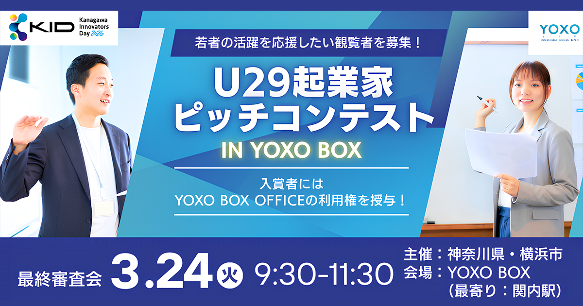 このたび、神奈川県が2026年3月24日に関内エリアで開催するイノベーション創出イベント「Kanagawa Innovators Day 2026(KID2026)」における1つのコンテンツとして、「KID2026 U29起業家ピッチコンテスト in YOXO BOX」最終審査会を実施します。
