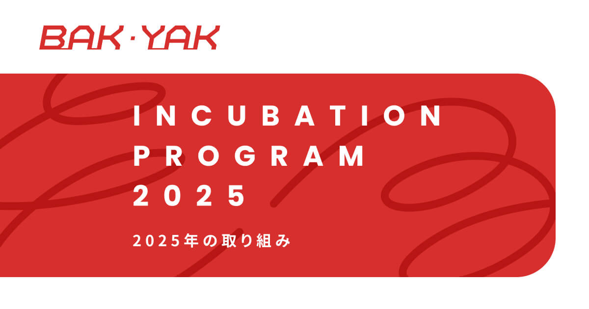 BAK・YAKは、ベンチャー企業と大企業等・自治体の連携プロジェクト創出を支援するプログラム「INCUBATION PROGRAM」と「PARTNERS CONNECT」を通し、オープンイノベーションの実現を目指します。